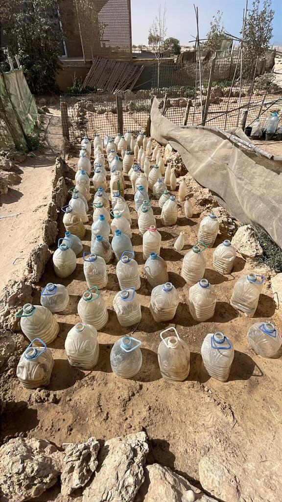 Wie auch beim Soya fehlt noch das Aufzuchttreibhaus und wird duch Wasserflaschen ersetzt.